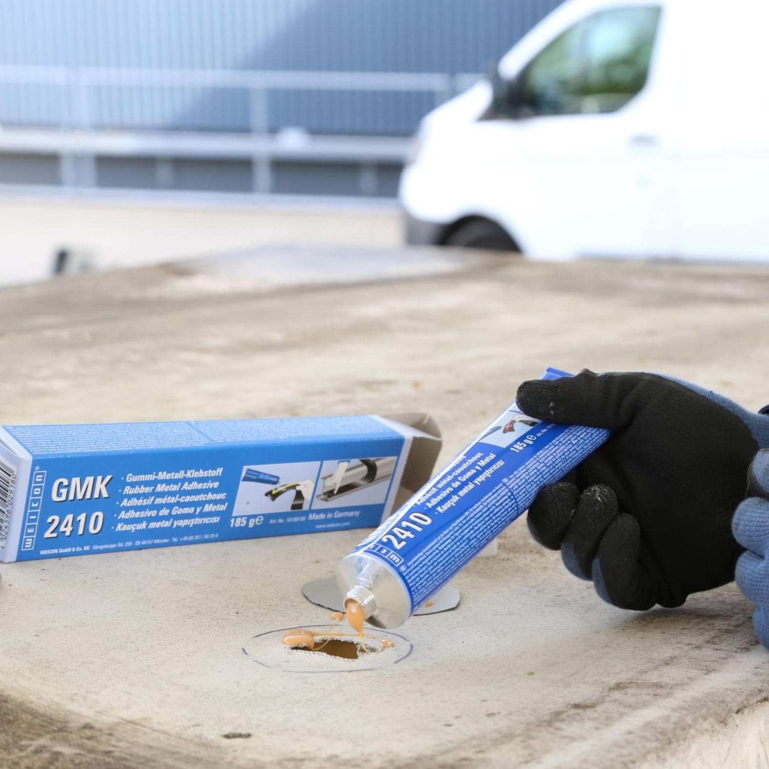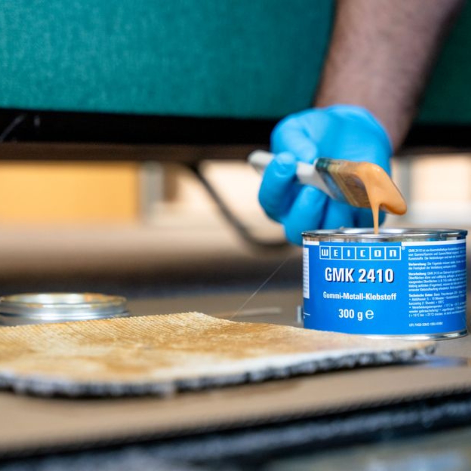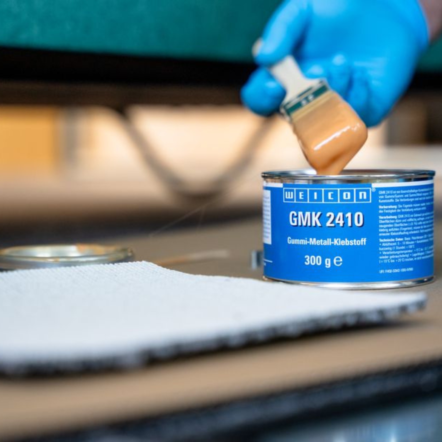 WEICON GMK 2410 is an adhesive based on polychloroprene (CR) for the high-strength, full-surface and flexible bonding of: – rubber to rubber – rubber to metal GMK 2410 also bonds cellular rubber, PE foam, leather, felt, insulating material, textiles, wood, and many plastics. WEICON GMK 2410 is not suitable for materials such as expanded polystyrene, polyethylene, polypropylene, flexible PVC foam, and artificial PVC leather.