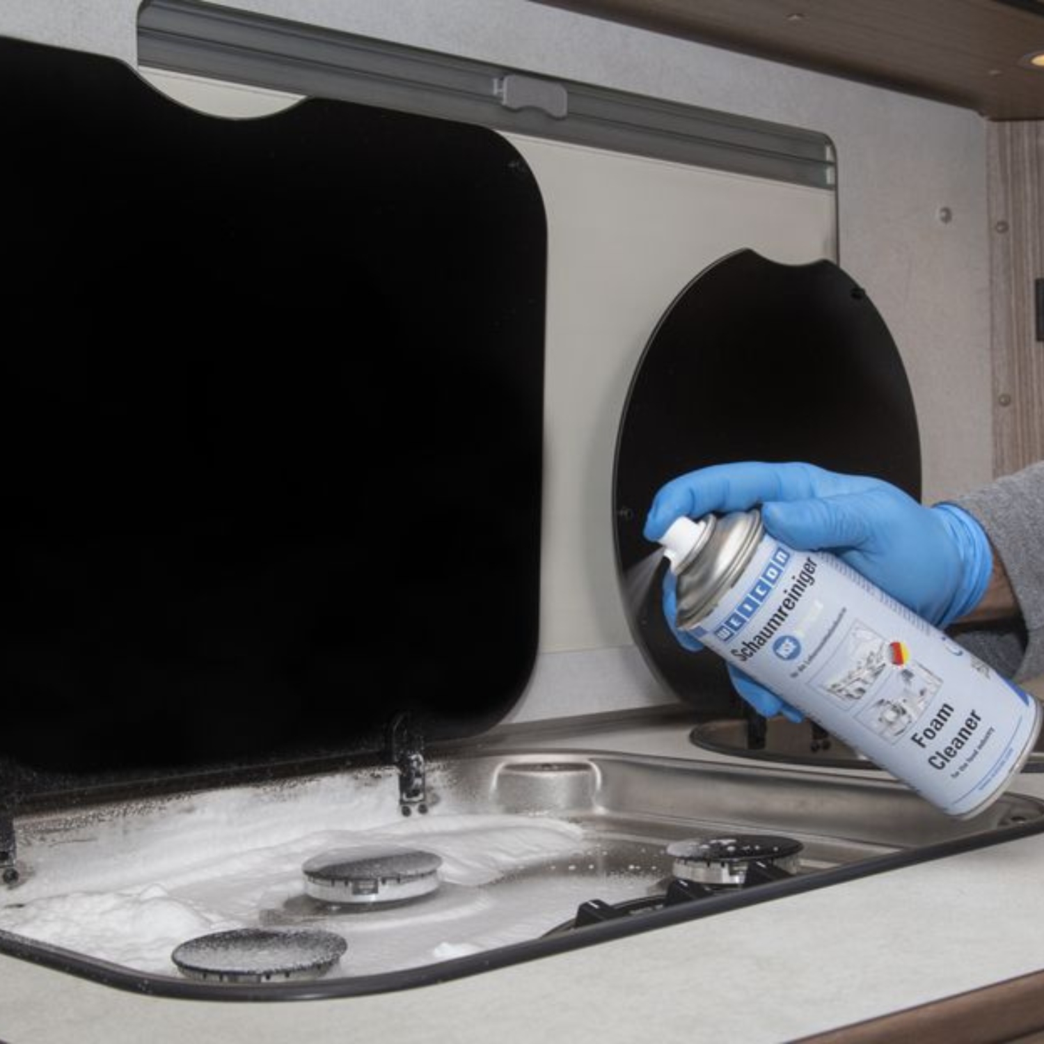 WEICON Foam Cleaner is universally applicable and can be used for the cleaning and degreasing of water-resistant surfaces and for the removal of soilings on plastic, glass and textile surfaces. Due to its NSF A1 registration, the foam cleaner is suitable for use in sensitive areas, such as the food and beverage industry as well as in the pharmaceutical and cosmetics industry. The spray is suitable for the cleaning of conveyor belts with contact to food, for example in production lines or retail shops. It removes soilings on machine housings and cleans scales, flat screens, touch screens, navigation systems and many more. Foam Cleaner eliminates many different impurities, such as oils and greases, fingerprints, soot, nicotine, dust as well as residues of insects. It can be used wherever acidic or alkaline detergents are not allowed.