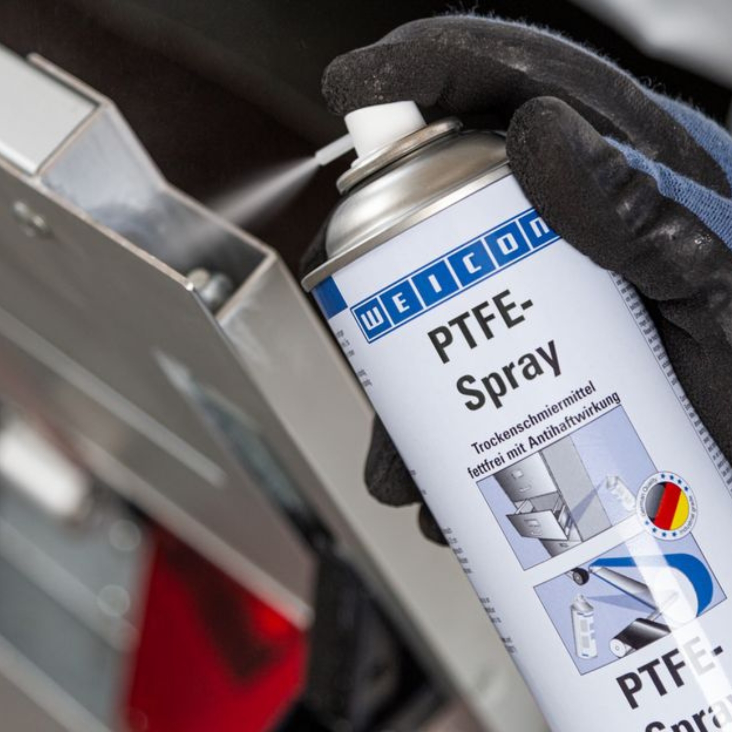 WEICON PTFE-Spray is a grease-free, dry lubricant based on PTFE with excellent sliding properties. PTFE Spray adheres to all metal, plastic and wood surfaces. Its high PTFE content greatly reduces the friction coefficient. The coating repels dirt, dust and water and is resistant to oils, greases and many chemicals. WEICON PTFE Spray can be used on runners and guides, conveyor belts, transport rollers, slides, windows, cutting tools and packing machines. It can also be used as a as a water-repellent coating for paper seals, cork seals and seal packaging, as a substitute for release agents containing silicone, and wherever oil or grease lubrication is not permitted or desired.