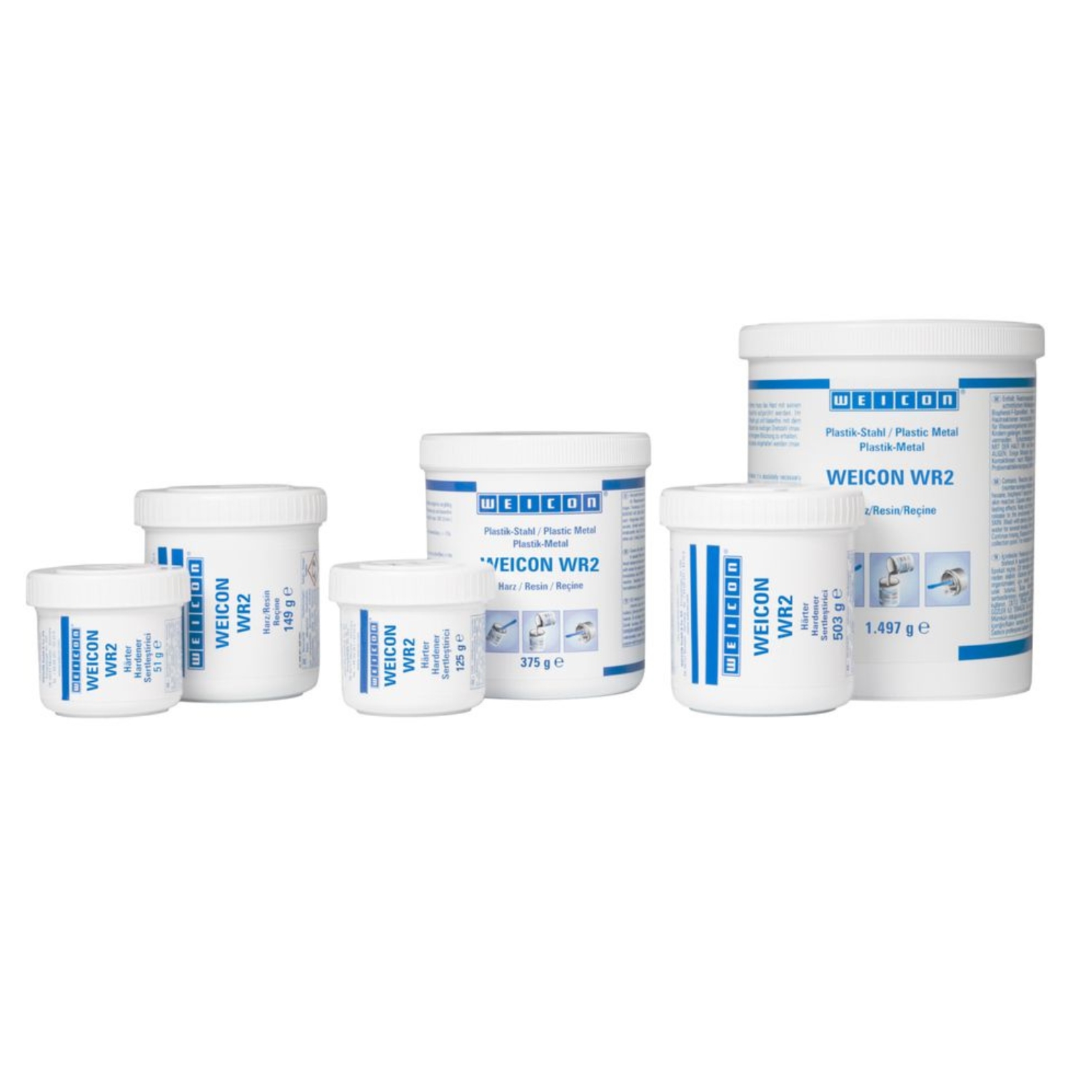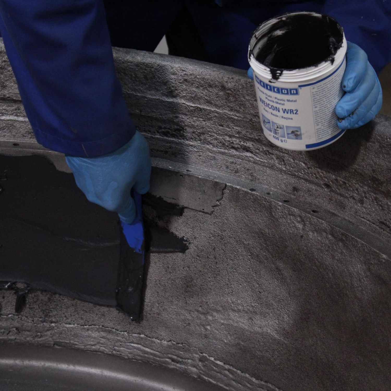 WEICON WR2 is a pasty wear protection and is particularly suitable for areas where the processing of casting compounds is not possible such as the repair of conveyors, guide rails and sliding ways. The epoxy resin system is also used to prevent wear on metal surfaces that are subject to high abrasion and erosion. It can serve as a wear-resistant underlayer before the final coating with WEICON Ceramic BL WR2 can be used in mechanical and plant engineering, in equipment engineering, and in many other areas of industry.
