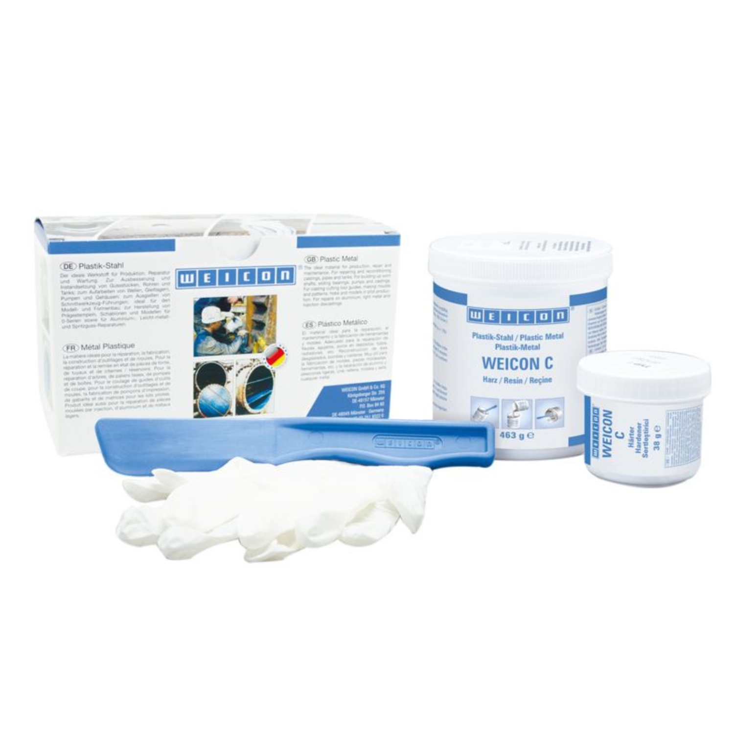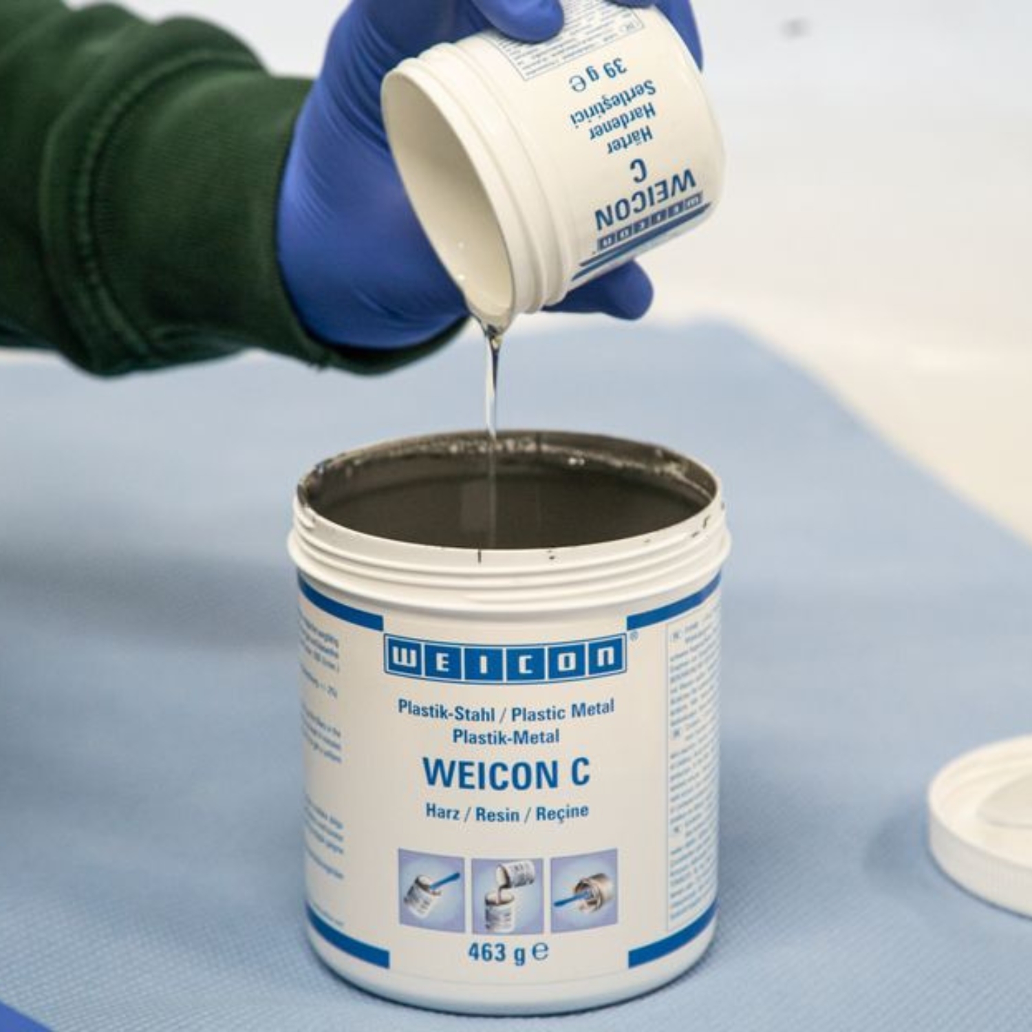 WEICON C is a temperature-resistant and flowable epoxy resin system especially for industrial use. The adhesive is non-corrosive, anti-magnetic and cures practically without shrinkage. WEICON C is particularly suitable as an adhesive for large-scale applications, for pouring out moulds and for the production of fixing devices and tools (e.g. injection moulds). It can be used in the tool and mould making sector as well as in many other industrial areas subjected to high thermal stress.