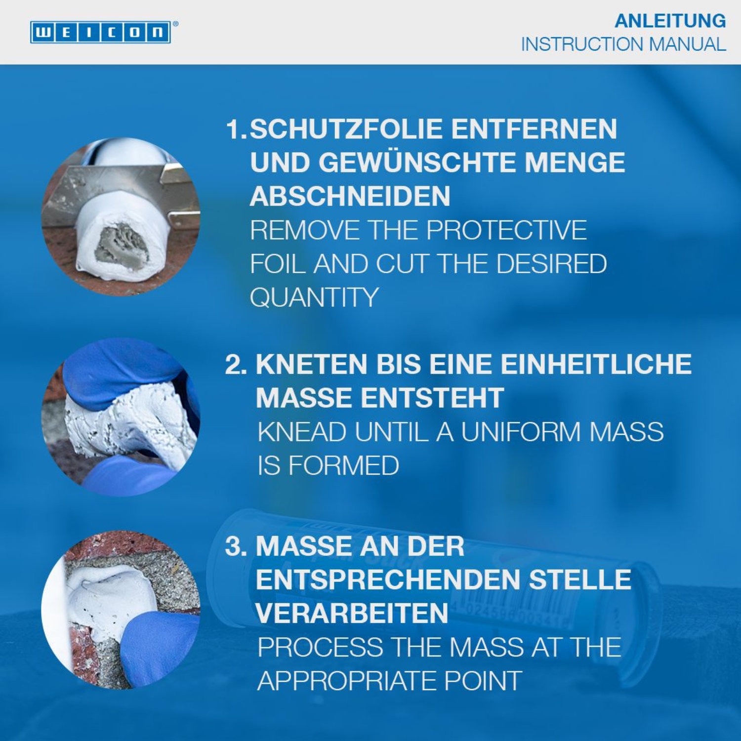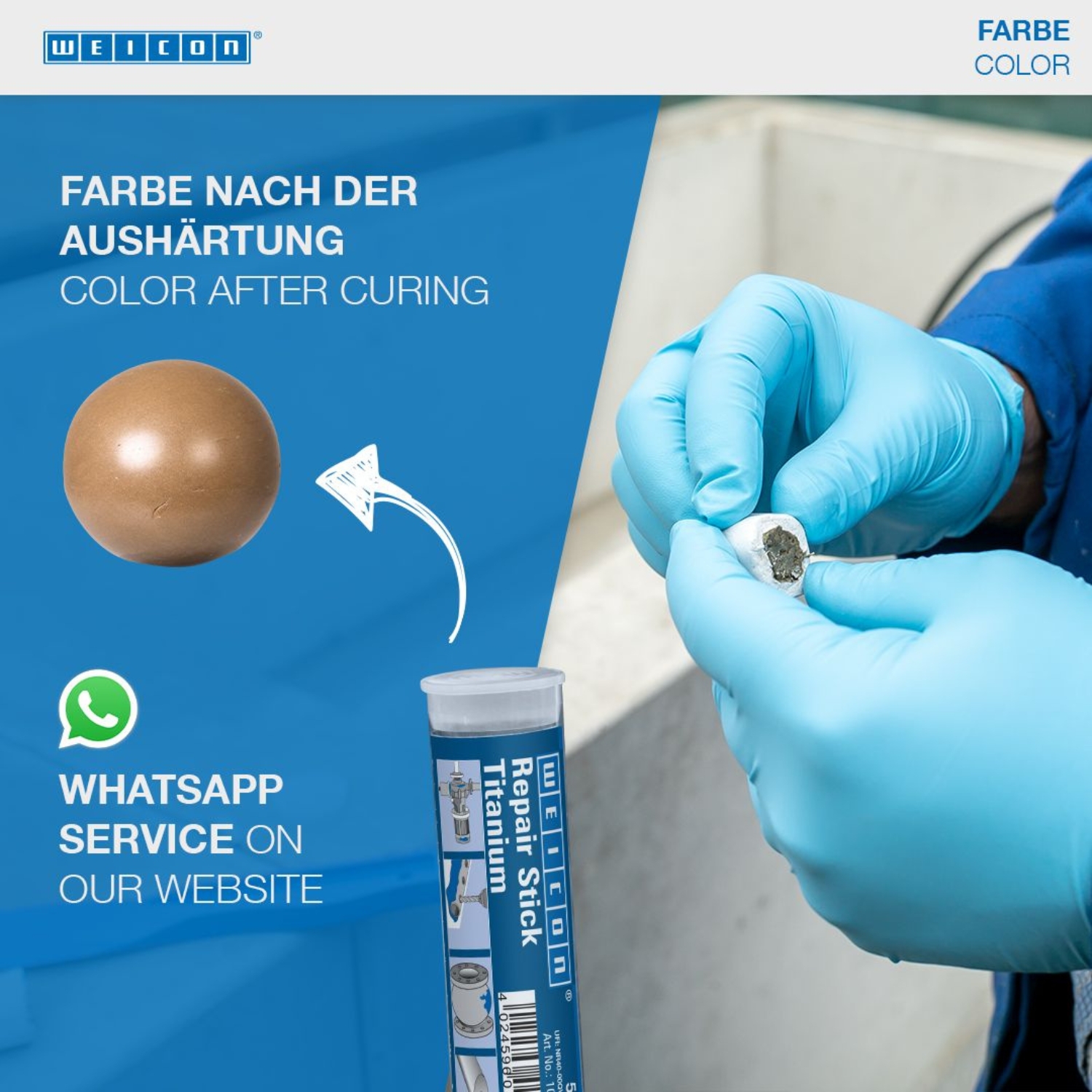 It is suited for the permanent and wear-resistant repair and bonding of metal parts such as tanks and pipelines, aluminium, light metal and injection moulded parts, shafts and slide bearings, pumps and housings and torn-out threads. The WEICON Repair Stick Titanium can be used in machine and system construction, tank construction and apparatus engineering, and in many other industrial areas.