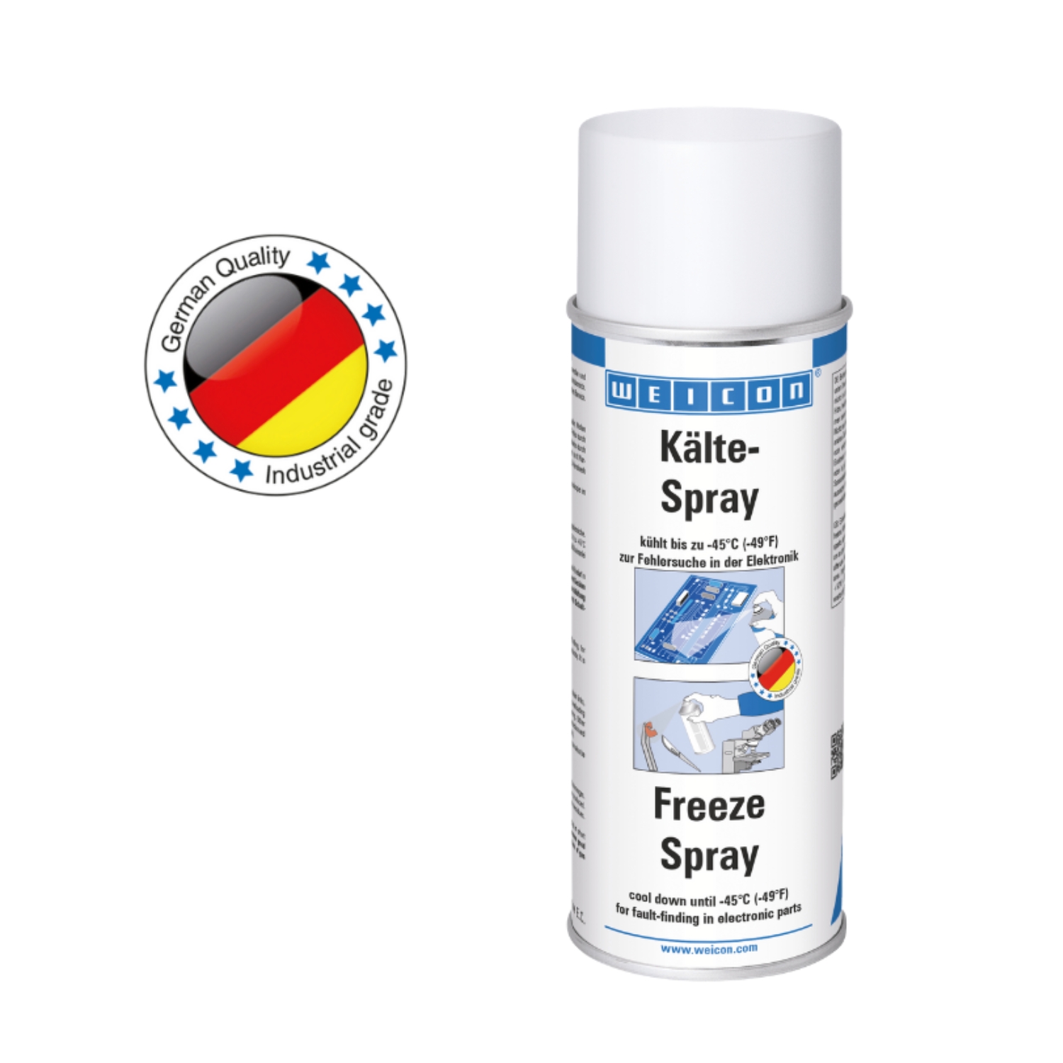 WEICON Freeze Spray has many uses and is suitable for fault-finding in electronics and for repair works in the industrial sector. Freeze Spray quickly cools parts down to -45 °C and allows pinpointed chilling of even the smallest construction parts. WEICON Freeze Spray is non-conductive and neutral to materials (with the exception of plastic) and can be used in many industrial and technical applications.