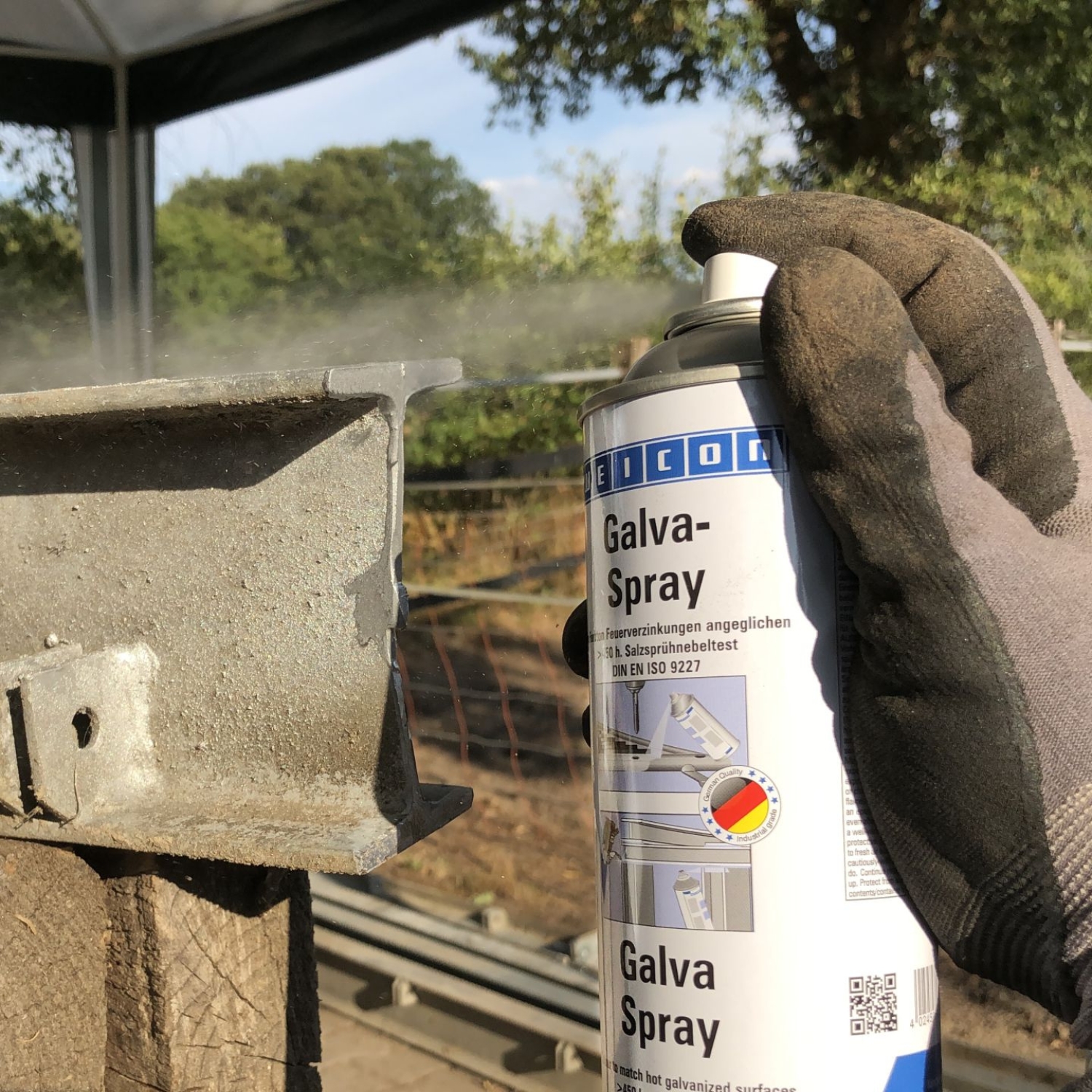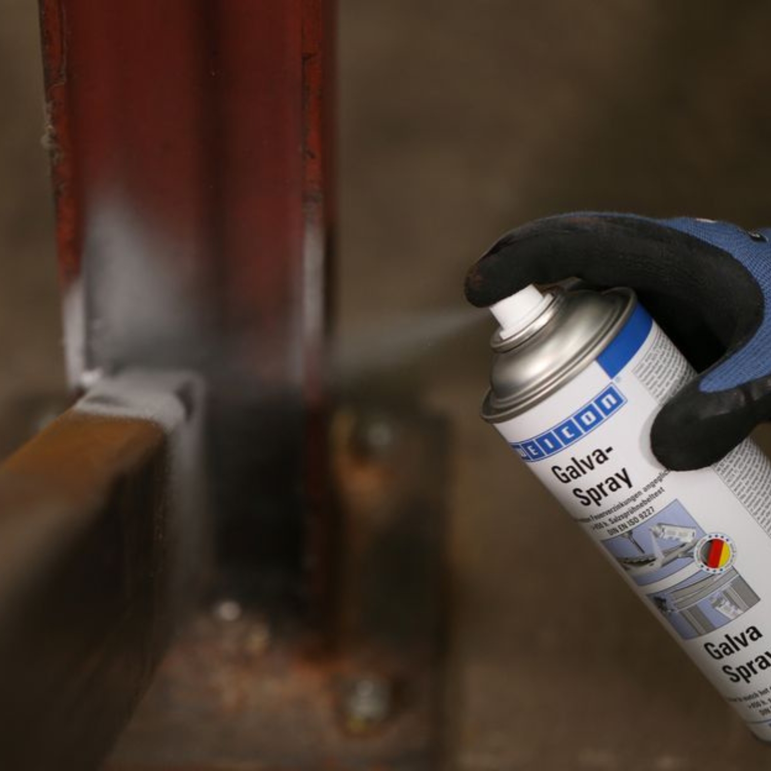 WEICON Galva Spray serves as permanent protective layer for all metal surfaces. It protects metals against rust and corrosion and is fast-drying and strongly adherent. The spray is resistant to salt water and fresh water and temperatures up to +300 °C (+572 °F). After more than 450 hours in the salt spray test according to DIN EN 9227, metal parts coated with WEICON Galva Spray did not show any corrosion. The spray can be used for repairing hot galvanized parts with matching colours, as highly effective antirust primer, e.g. for car bodypainting, as coating on welded joints and drill holes, and as conductive intermediate layer in spot-welding.